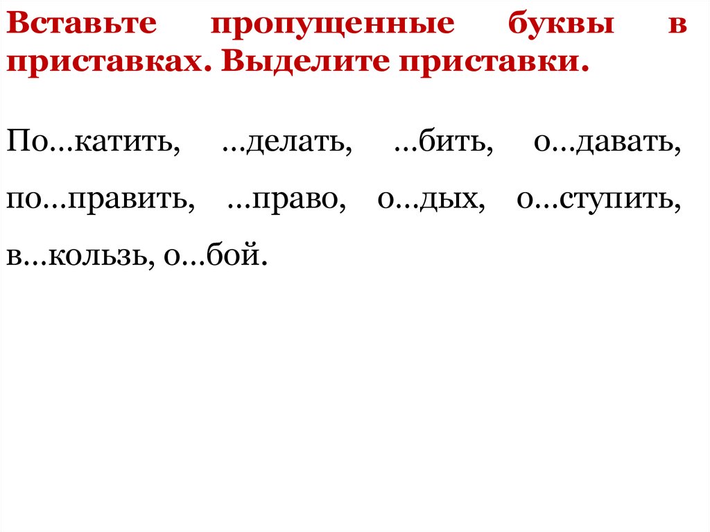 по…править, …право, о…дых, о…ступить,