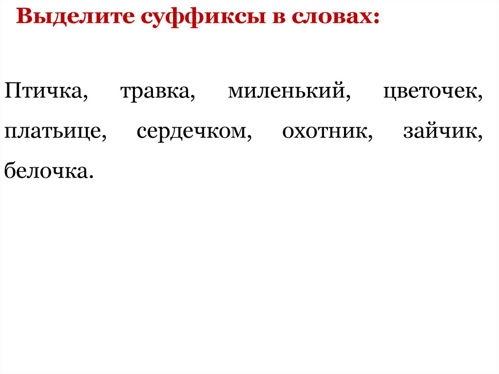 Выделите суффиксы в словах:Птичка,