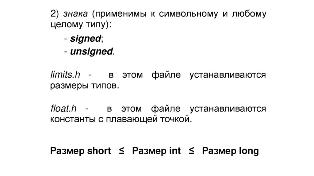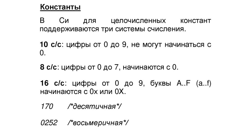 3. Типы, операторы и выражения в языке СиОсновные объекты программы: