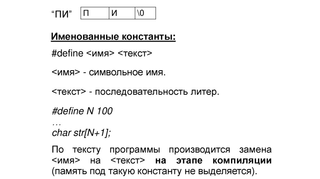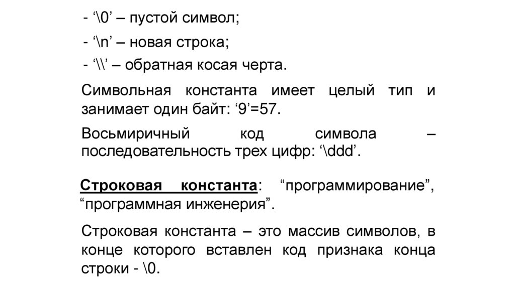 - ‘\0’ – пустой символ;- ‘\n’ – новая строка;