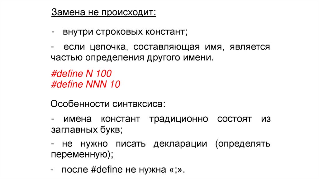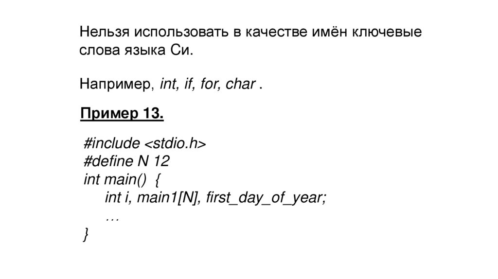 Нельзя использовать в качестве имён ключевыеслова языка Cи.