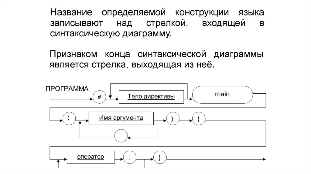 Название определяемой конструкции языказаписывают над стрелкой, входящей в