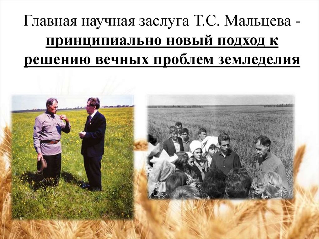 Главная научная заслуга Т.С. Мальцева принципиально новый подход крешению вечных проблем земледелия