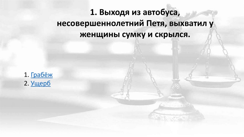 1. Выходя из автобуса,несовершеннолетний Петя, выхватил у