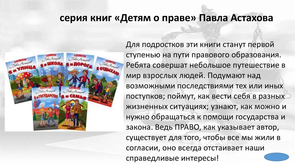серия книг «Детям о праве» Павла АстаховаДля подростков эти книги станут первой