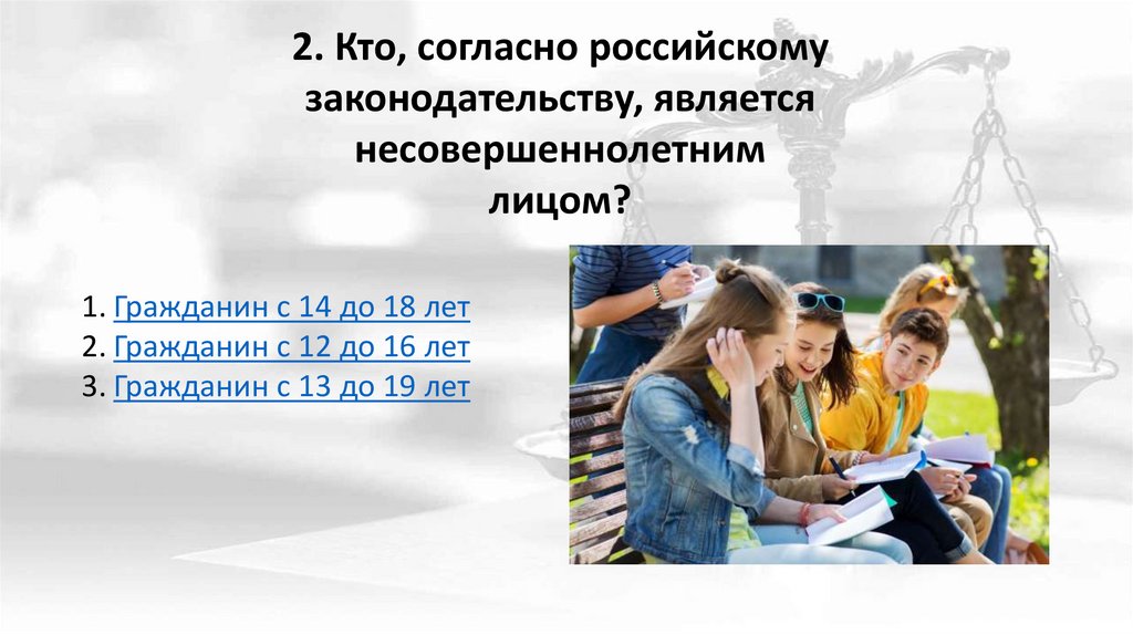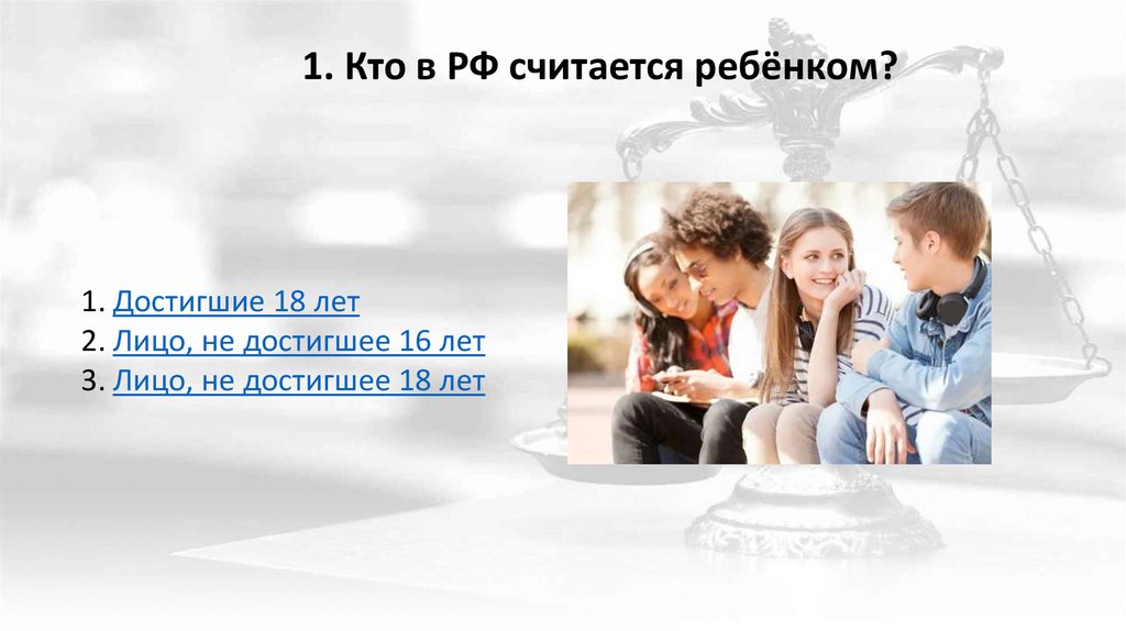 1. Кто в РФ считается ребёнком?1. Достигшие 18 лет