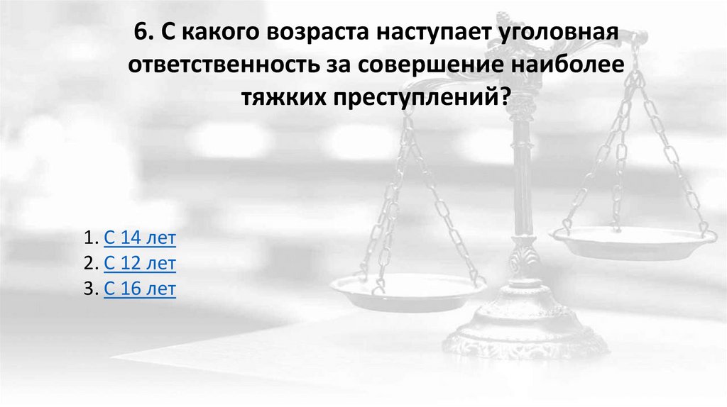 6. С какого возраста наступает уголовнаяответственность за совершение наиболее