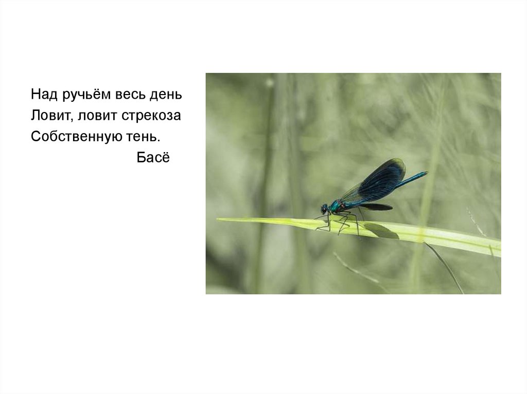 Над ручьём весь деньЛовит, ловит стрекоза