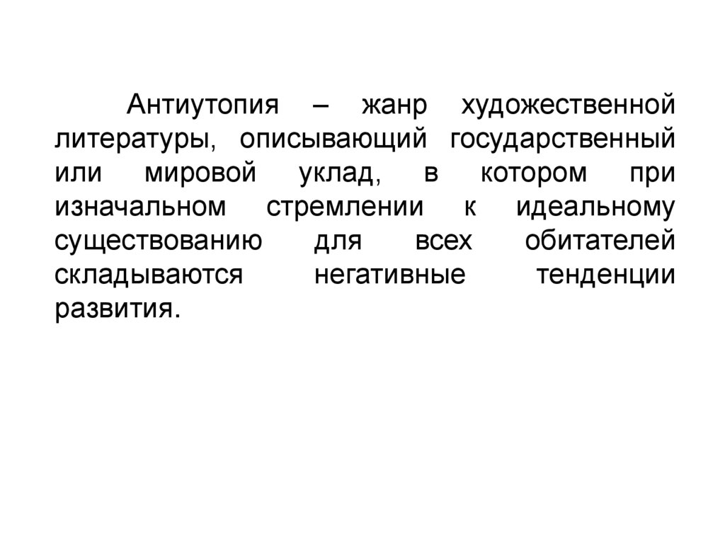 Антиутопия – жанр художественнойлитературы, описывающий государственный