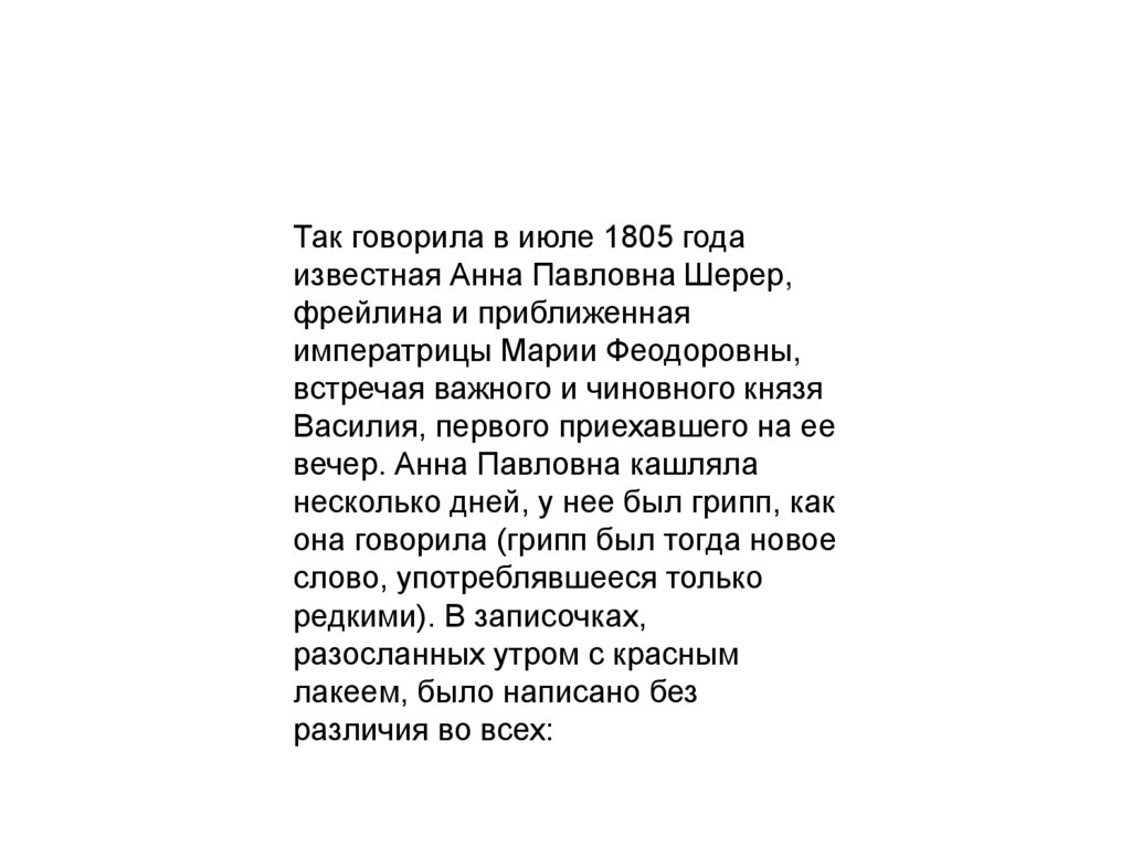 Так говорила в июле 1805 годаизвестная Анна Павловна Шерер,