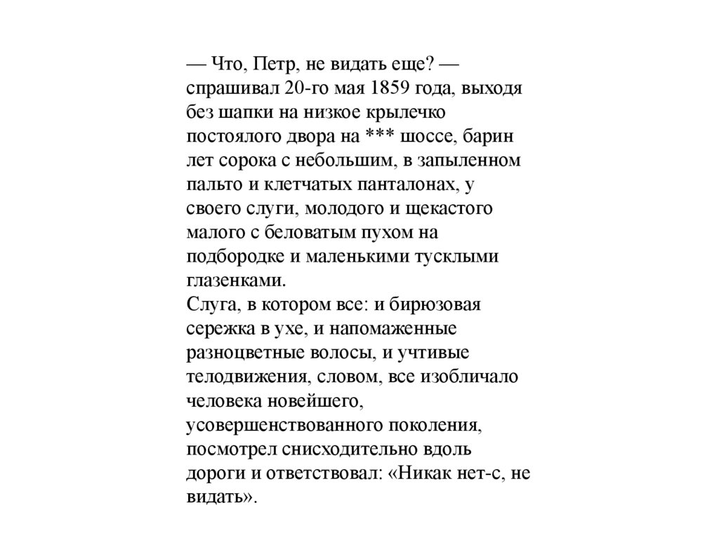 — Что, Петр, не видать еще? —спрашивал 20-го мая 1859 года, выходя