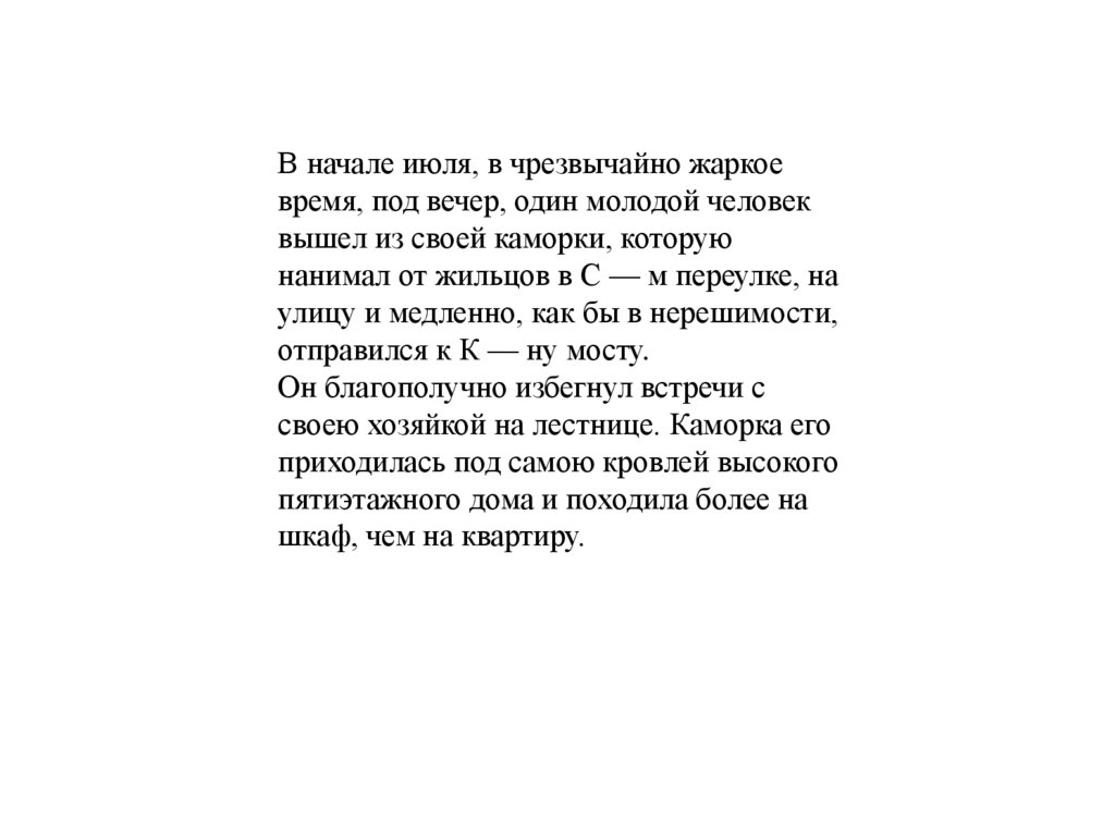 В начале июля, в чрезвычайно жаркоевремя, под вечер, один молодой человек