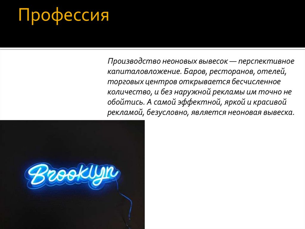 ПрофессияПроизводство неоновых вывесок — перспективное