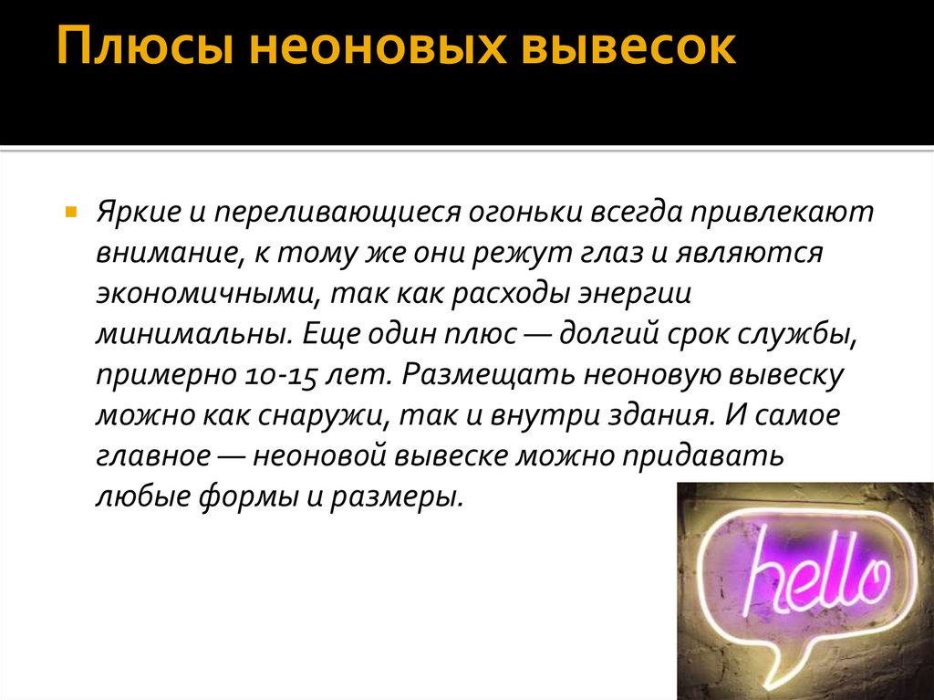 Плюсы неоновых вывесокЯркие и переливающиеся огоньки всегда привлекают