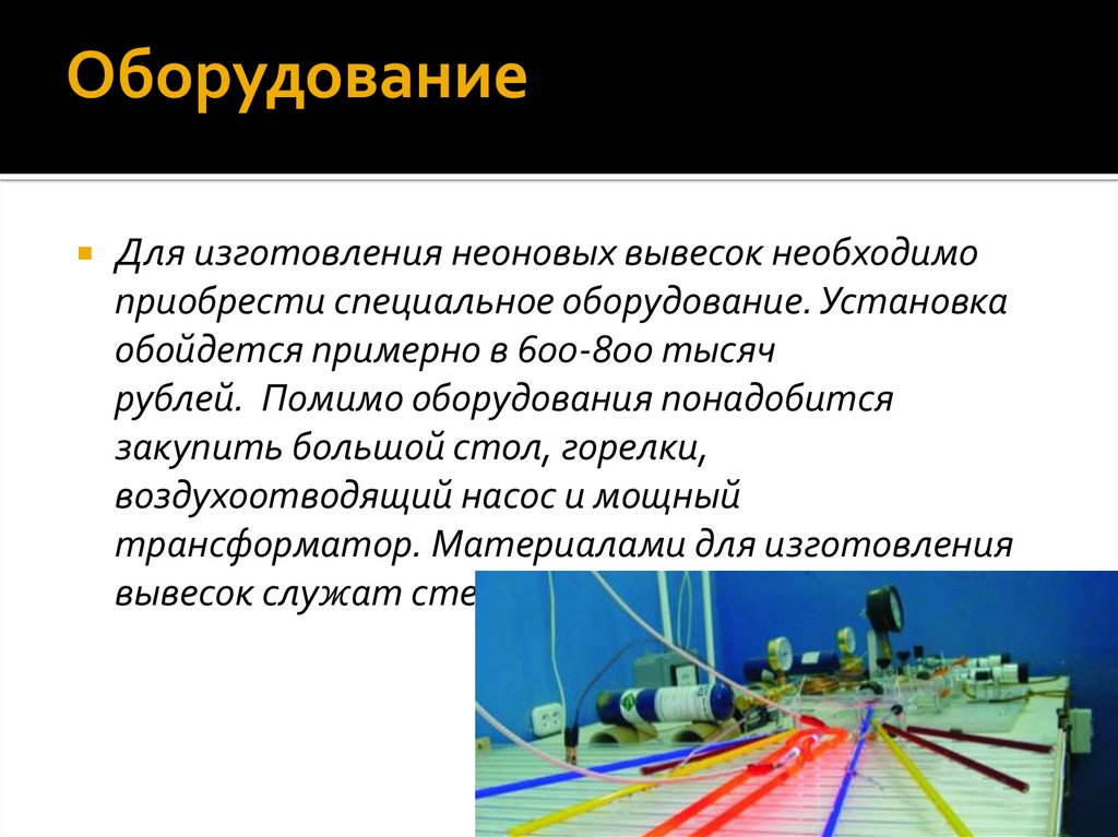ОборудованиеДля изготовления неоновых вывесок необходимо