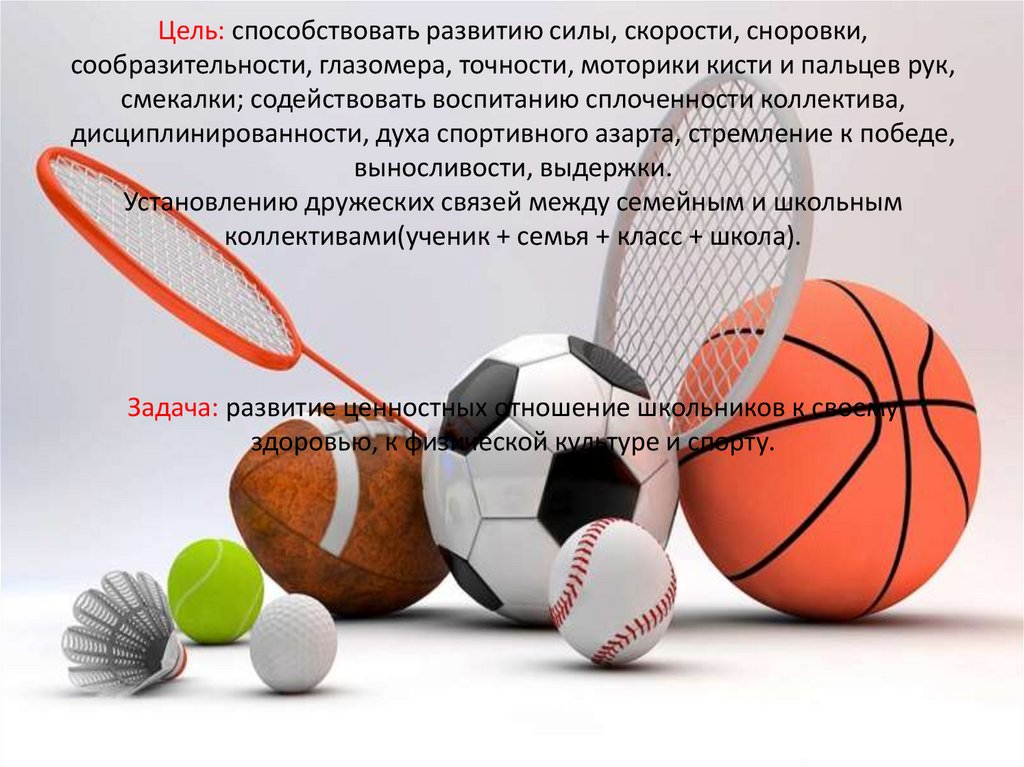 Цель: способствовать развитию силы, скорости, сноровки,сообразительности, глазомера, точности, моторики кисти и пальцев рук,