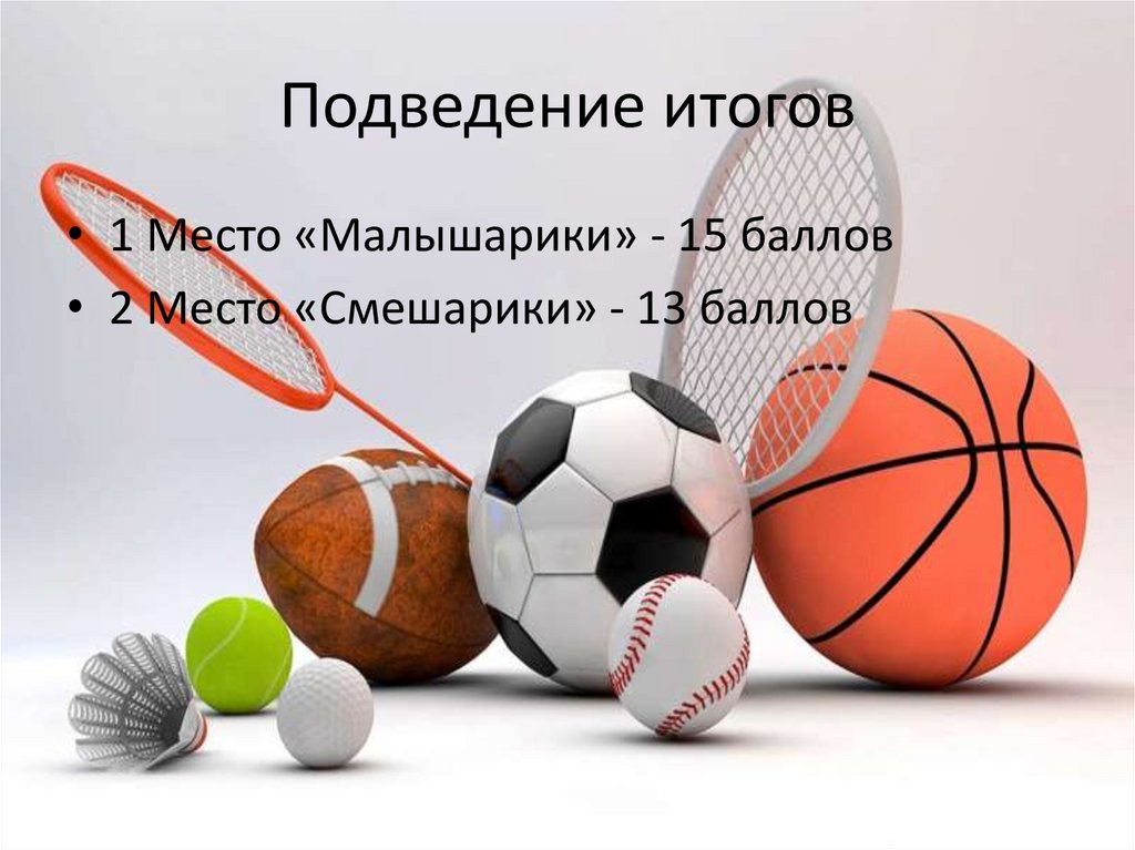 Подведение итогов• 1 Место «Малышарики» - 15 баллов