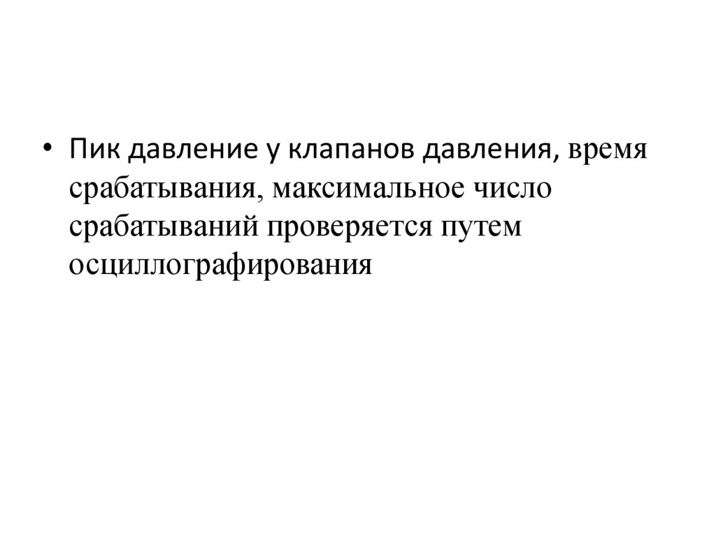 • Пик давление у клапанов давления, времясрабатывания, максимальное число
