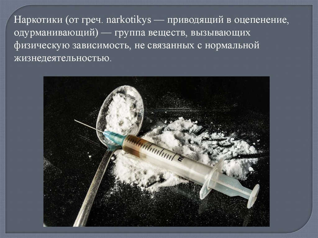 Наркотики (от греч. narkotikуs — приводящий в оцепенение, одурманивающий)