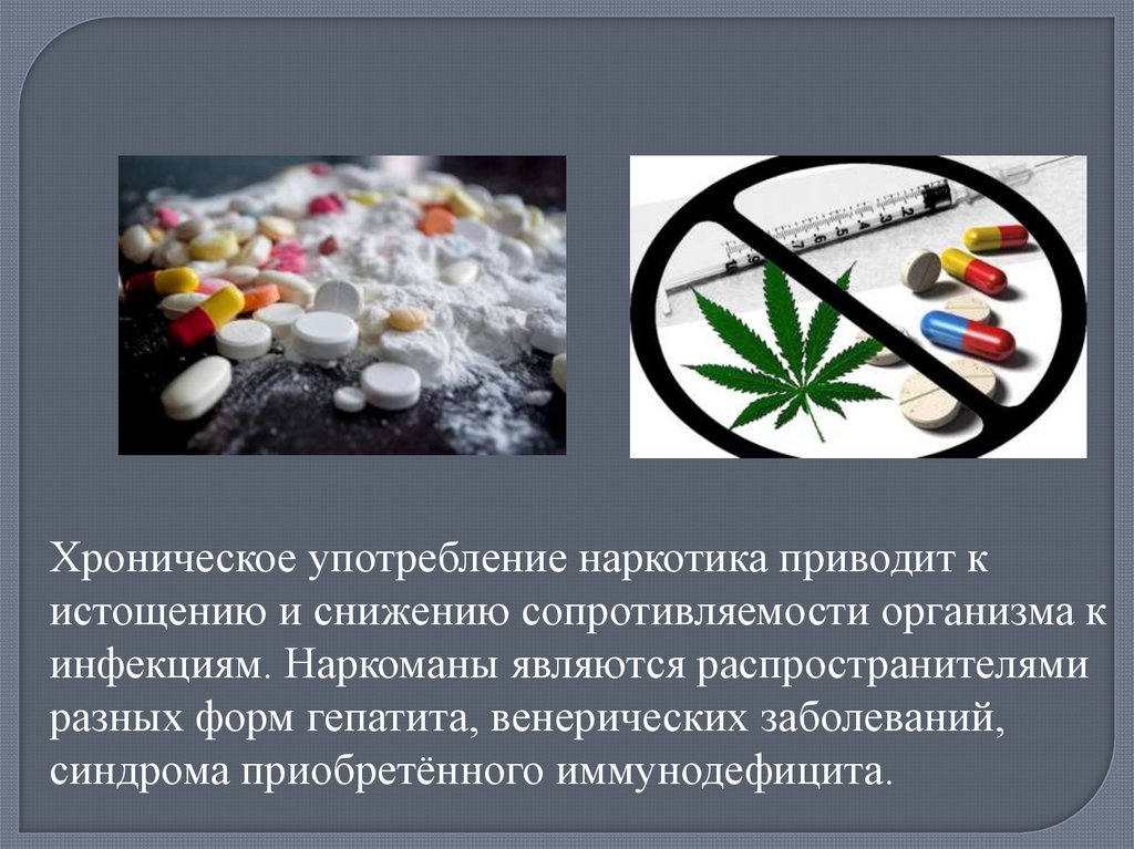 Хроническое употребление наркотика приводит кистощению и снижению сопротивляемости организма к
