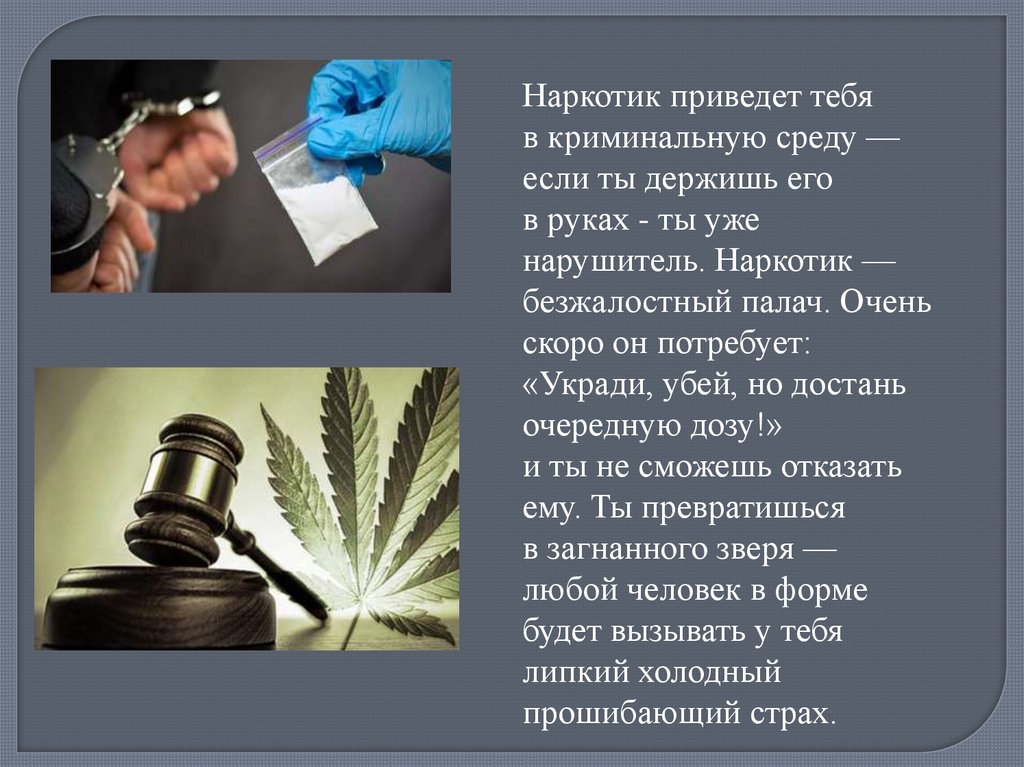 Наркотик приведет тебяв криминальную среду —