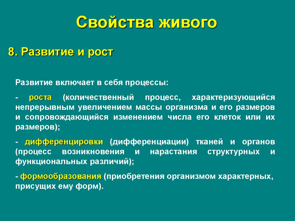 развития живых существ