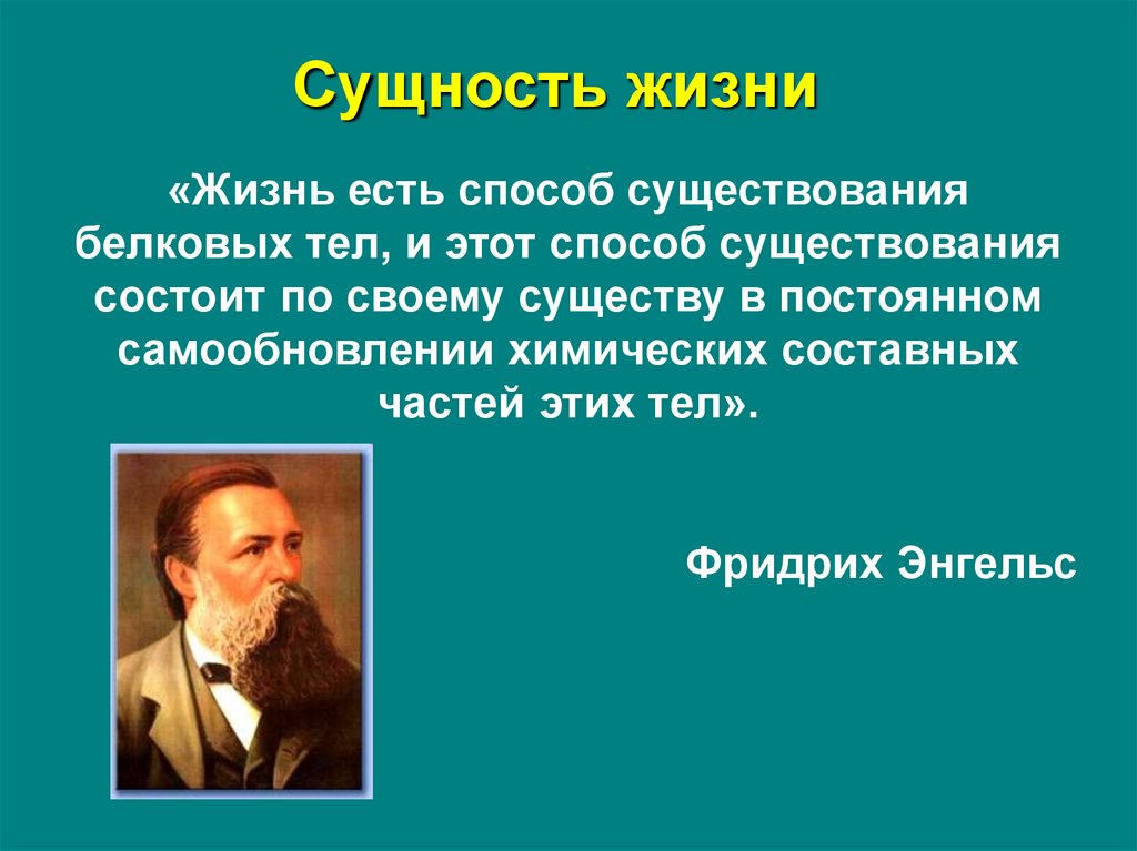 Сущность жизни«Жизнь есть способ существования