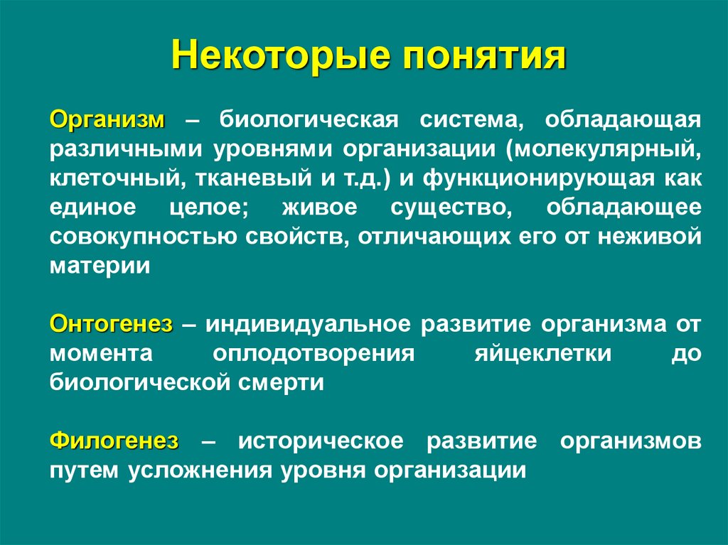 Некоторые понятияОрганизм – биологическая система, обладающая