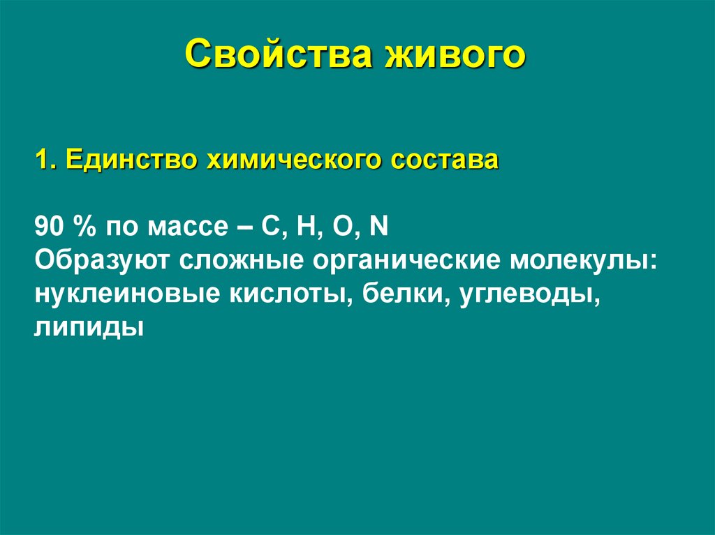 Свойства живого1. Единство химического состава
