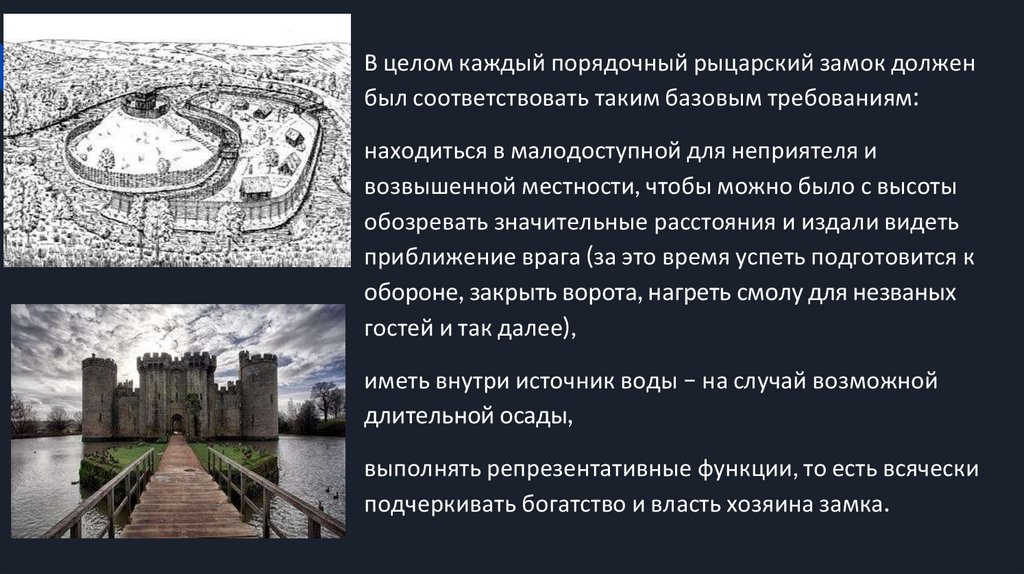 В целом каждый порядочный рыцарский замок долженбыл соответствовать таким базовым требованиям:
