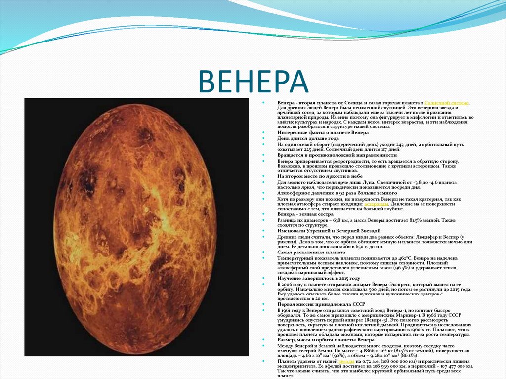 ВЕНЕРАВенера - вторая планета от Солнца и самая горячая планета в Солнечной системе.