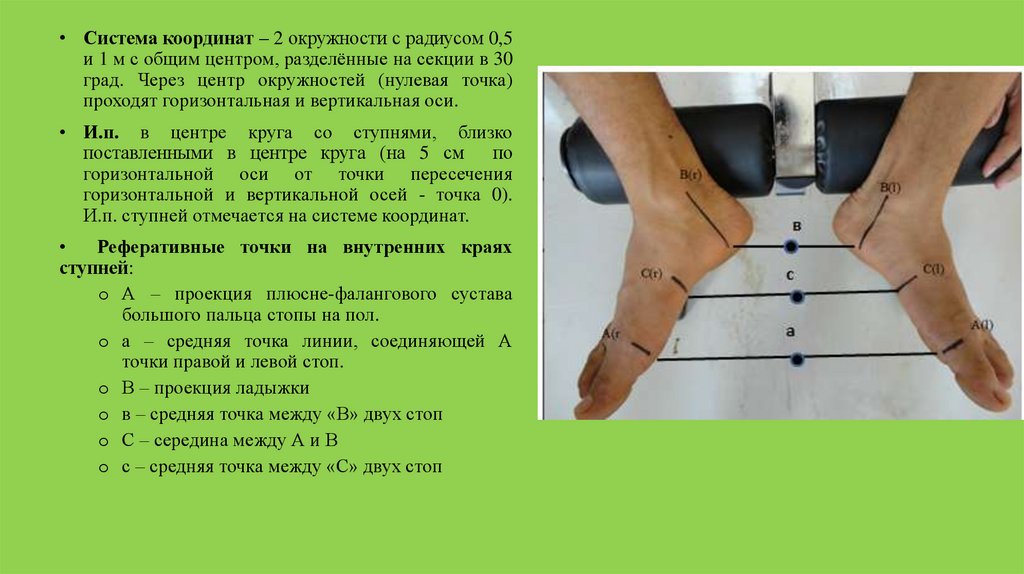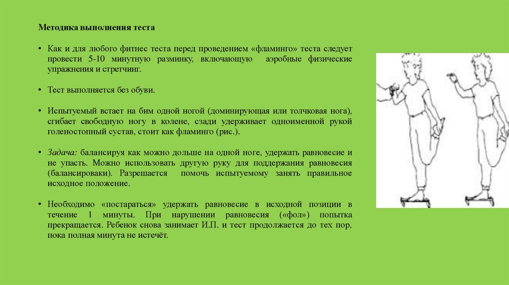 • Тест может выполнятся в обуви или без обуви, так какимеются данные, что наличие или отсутствие обуви не