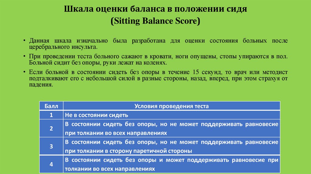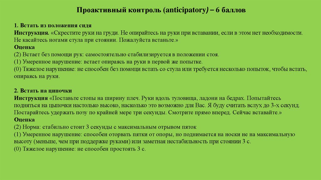 • Если пациент нуждается в физической помощи при выполнение задания, оно оценивается в 0 баллов.