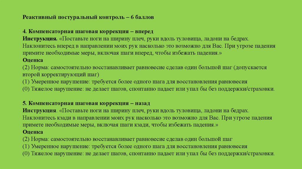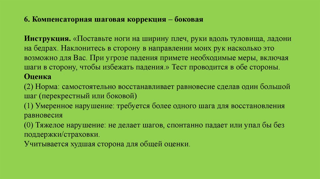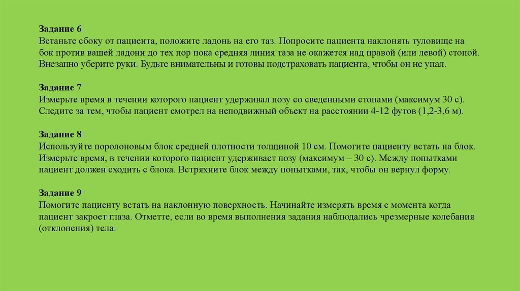 должно оставаться достаточное пространство для его шага назад.) Попросите пациента наклоняться в сторону до тех пор пока его плечи