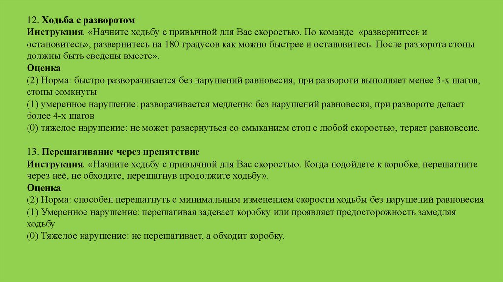 каждые 3-5 шагов. Отметите наличие у пациента проблем при поворотах в любом