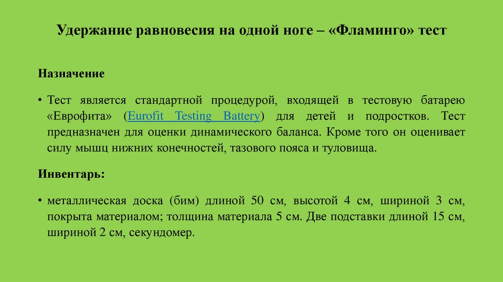 • Тест применяется для исследования функции баланса в условиях суженной базы опоры.