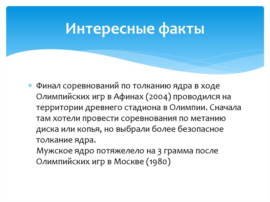 Интересные фактыФинал соревнований по толканию ядра в ходе