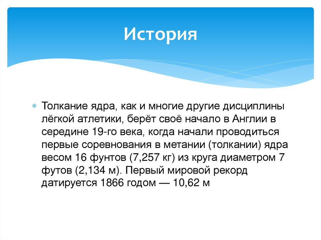 ИсторияТолкание ядра, как и многие другие дисциплины