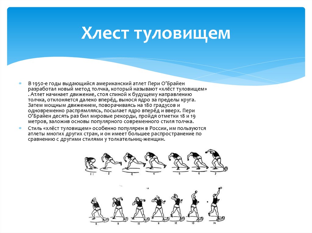 Хлест туловищемВ 1950-е годы выдающийся американский атлет Пери О’Брайен