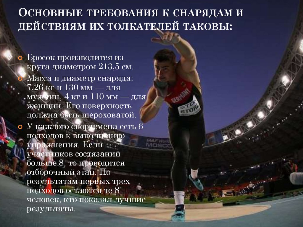 состязаниях использовались ядра массой