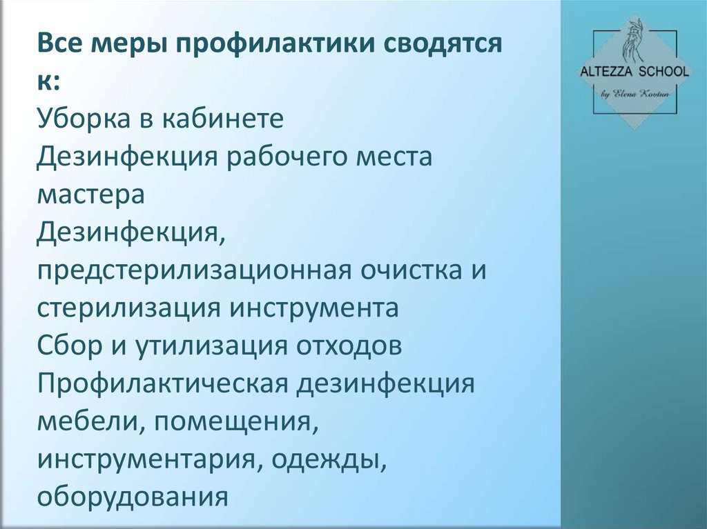 Все меры профилактики сводятсяк: