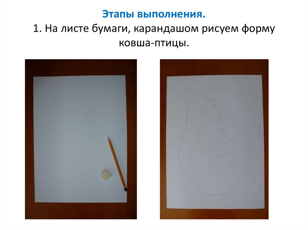Этапы выполнения.1. На листе бумаги, карандашом рисуем форму