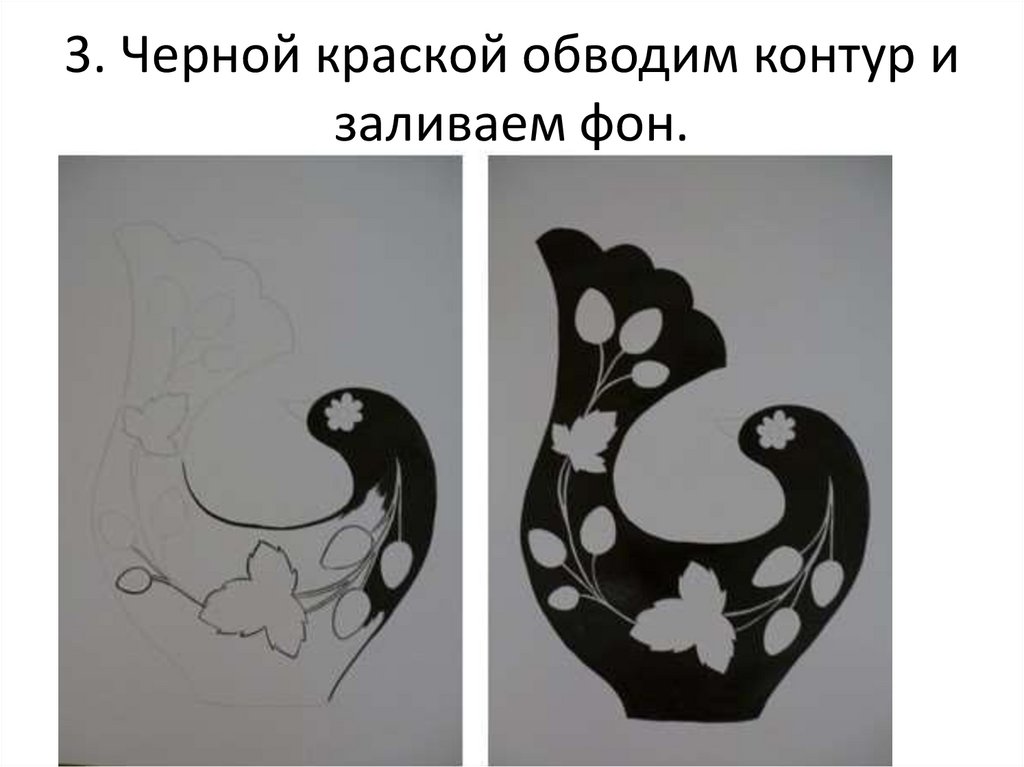 3. Черной краской обводим контур изаливаем фон.