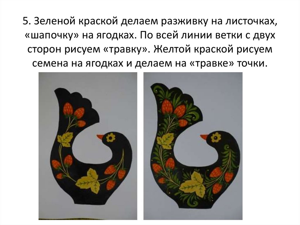 Хохлома. Роспись ковша-птицы