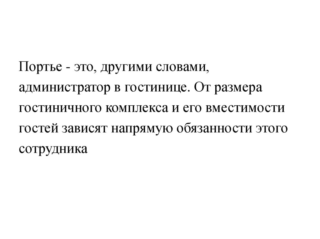 Портье - это, другими словами,администратор в гостинице. От размера