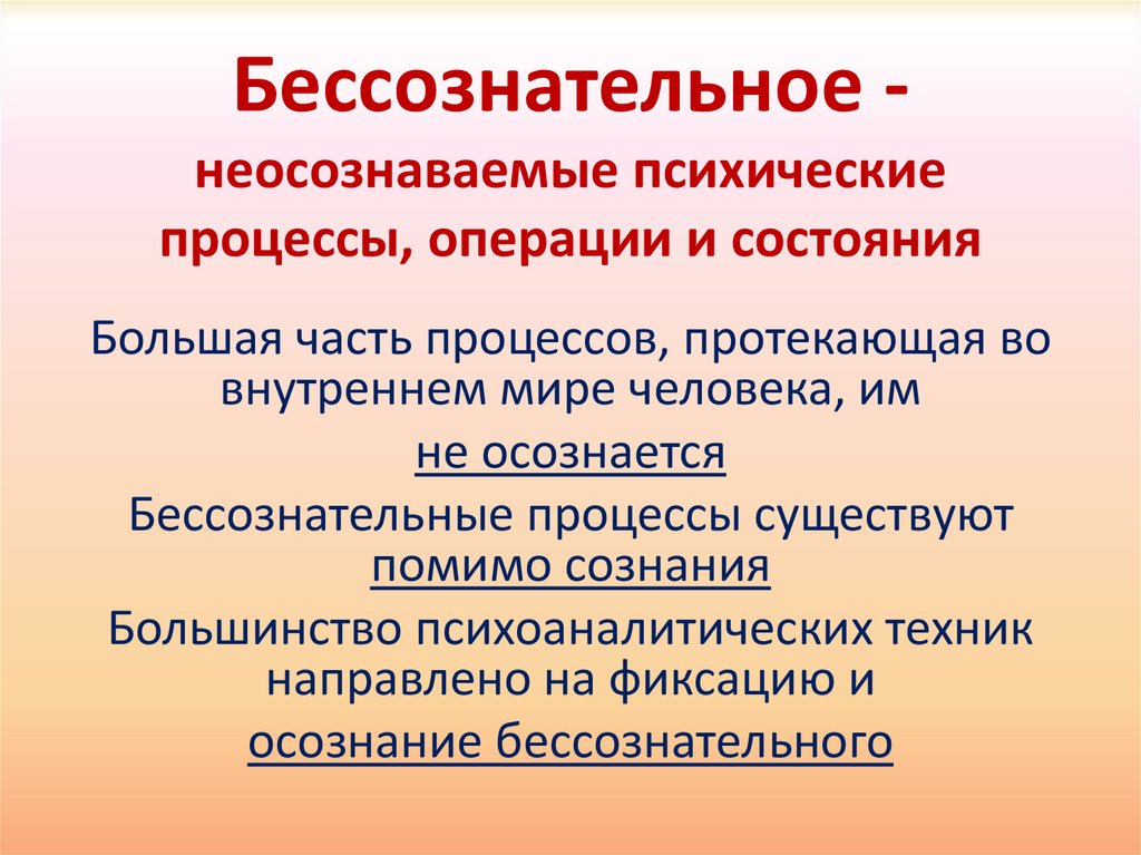 Бессознательное неосознаваемые психическиепроцессы, операции и состояния