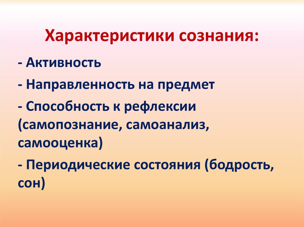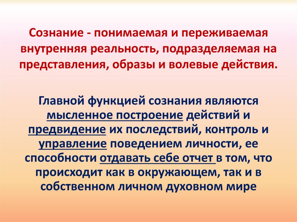 Сознание - понимаемая и переживаемаявнутренняя реальность, подразделяемая на