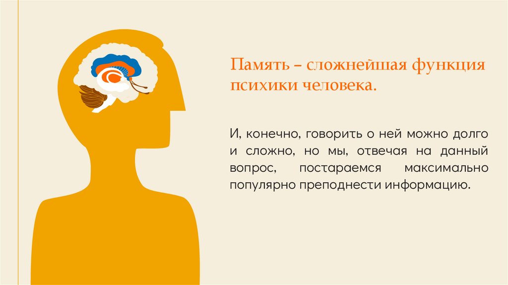 Память – сложнейшая функцияпсихики человека.