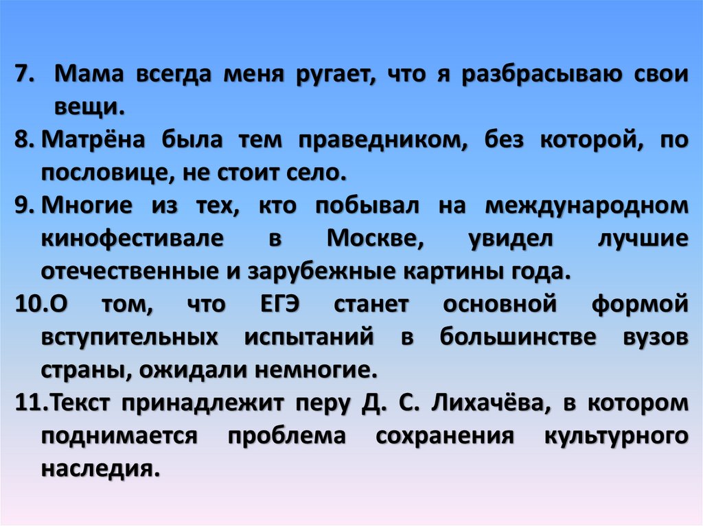 7. Мама всегда меня ругает, что я разбрасываю своивещи.