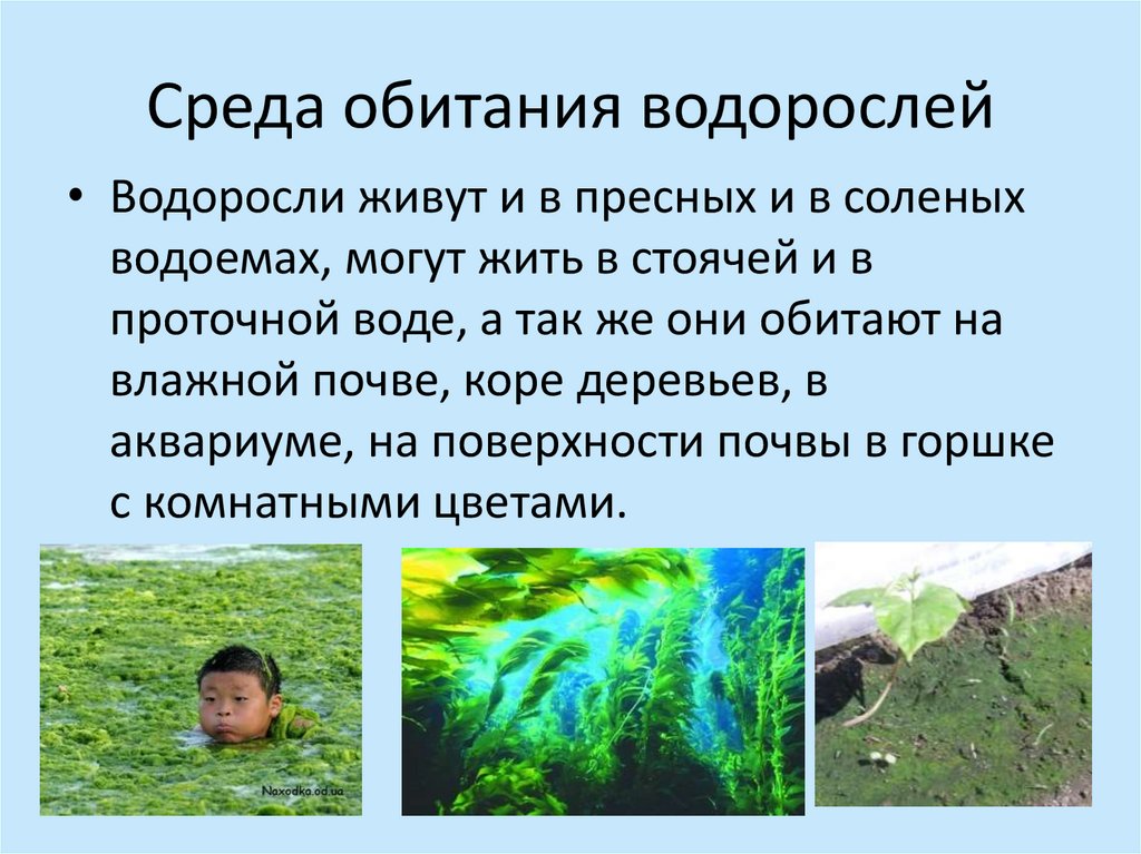 Среда обитания водорослей• Водоросли живут и в пресных и в соленых